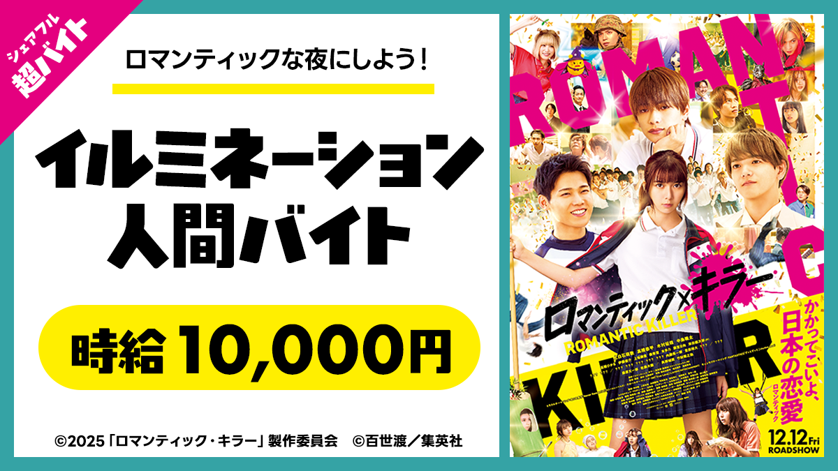 映画『ロマンティック・キラー』のイベントで発光するアルバイト!?“イルミネーション人間バイト”をシェアフル超バイトで募集!
