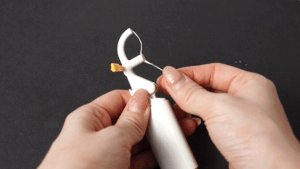 2.フロスの薄い厚さと丈夫さで 歯間の異物除去