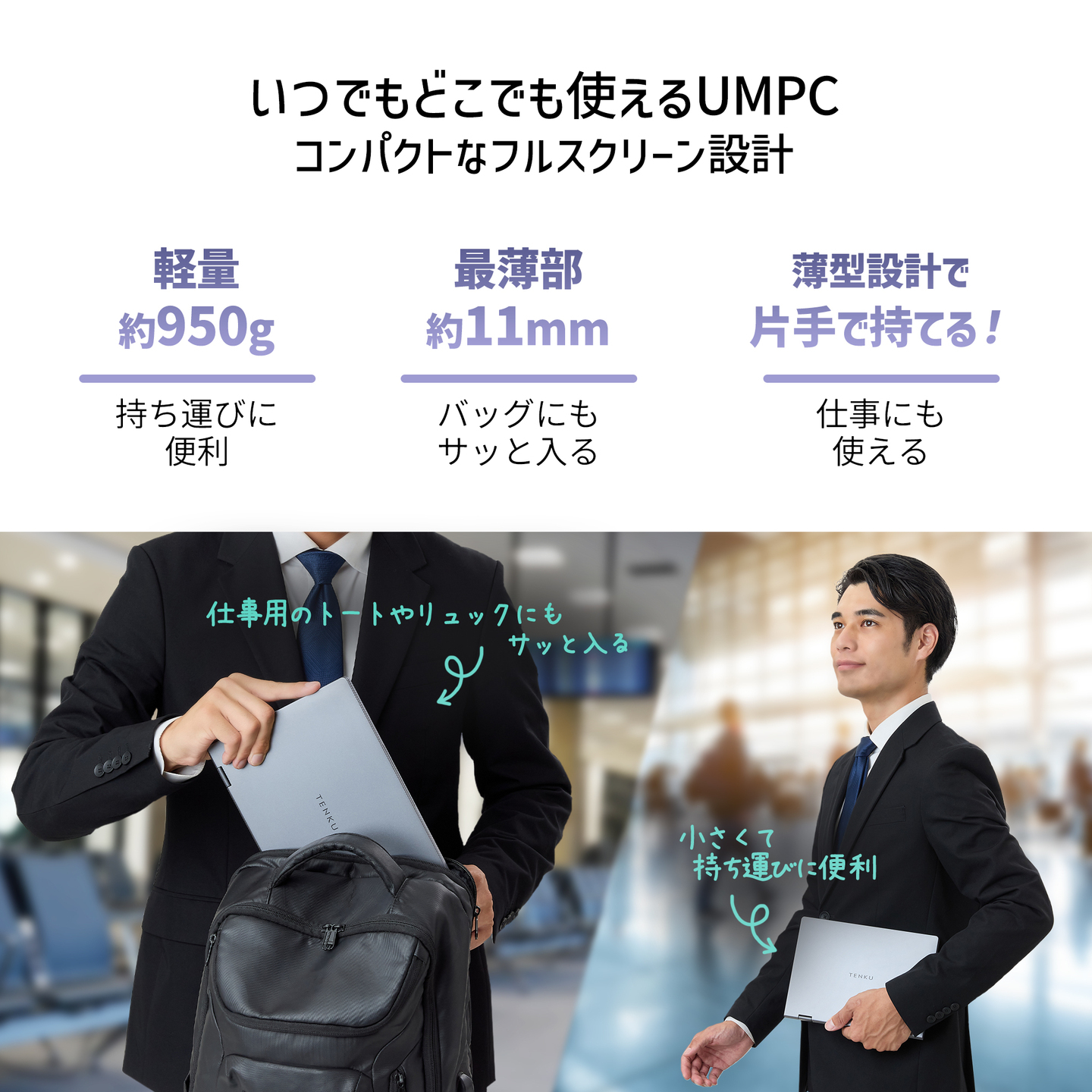 株式会社天空(東京都渋谷区、代表取締役:山田 拓郎)は、Windows 11 Pro搭載10.51インチ2 in 1 UMPC「TENKU Note Pro」を2025年12月中旬に発売します。本日から予約を開始し、先行予約価格としてハイビーム公式オンラインストアでは33%オフの79,060円(税込)で提供します。当製品は好評のTENKU Mobile S10+の機能強化版で、CPUに13世代 インテル® Core™ i3-1315Uを搭載し、メインメモリを32GBに拡張しSurfaceペンに対応することで2 in 1 UMPCのメリットをフル活用できます。本製品は、当社による国内1年間の保証がついています。1年を超えた場合でも破損や故障、バッテリーの交換なども国内で対応できるため、安心して利用可能な製品です。株式会社天空は今後も魅力的なモバイルPCをリリースしていきます。