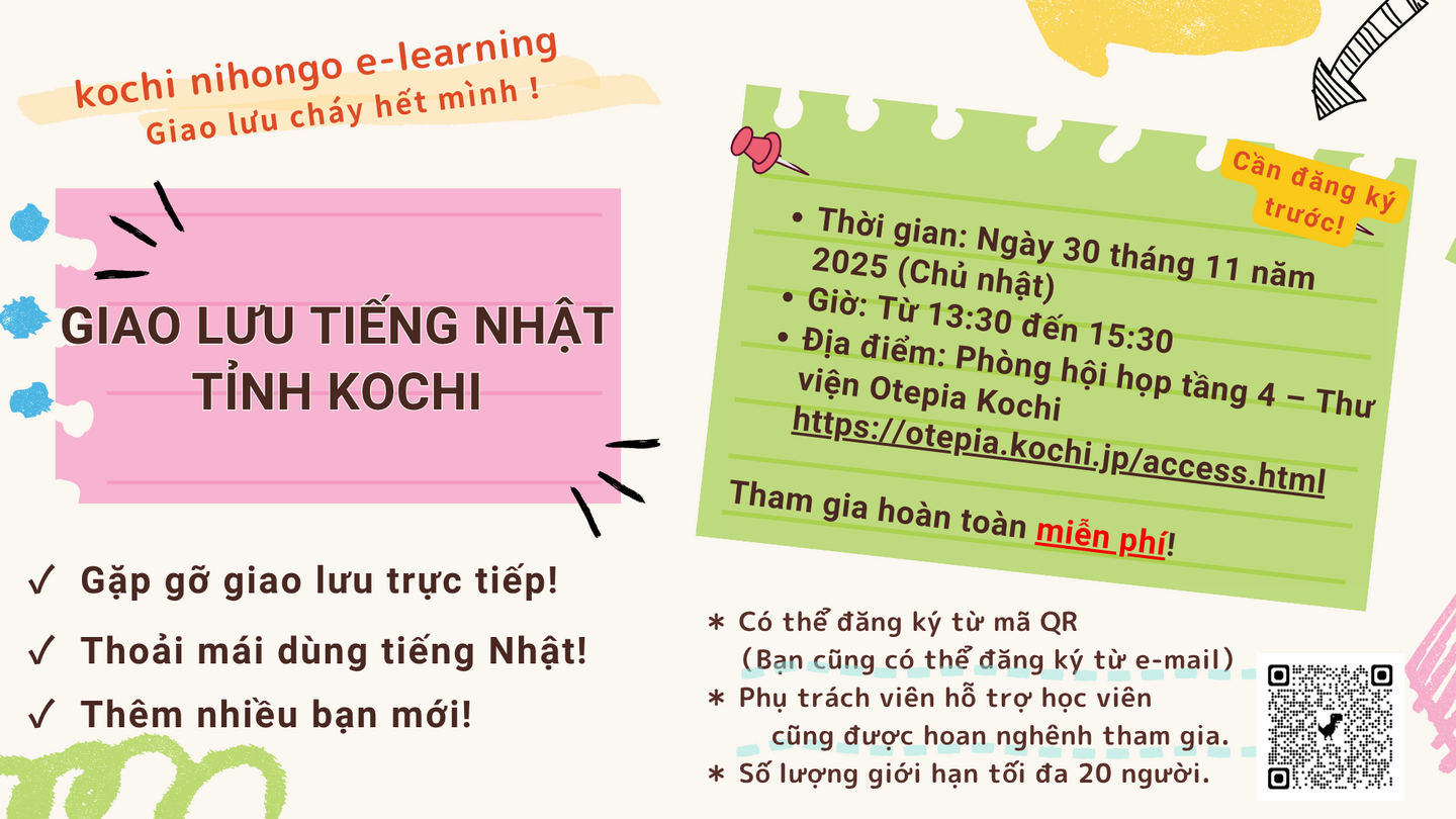 オンライン日本語学習サイト(Attain Online Japanese)運営、eラーニング制作のアテイン株式会社(本社:東京都江東区、電話:03-6381-8641)が、高知県から委託を受け実施している、「高知県内在住外国人を対象とした日本語eラーニング」の受講生を対象とした現地交流会を2025年11月30日に実施します。開催直前となりましたが、現時点でまだお席に若干の余裕がございますので、参加ご希望の方はお早めにお申込みください。