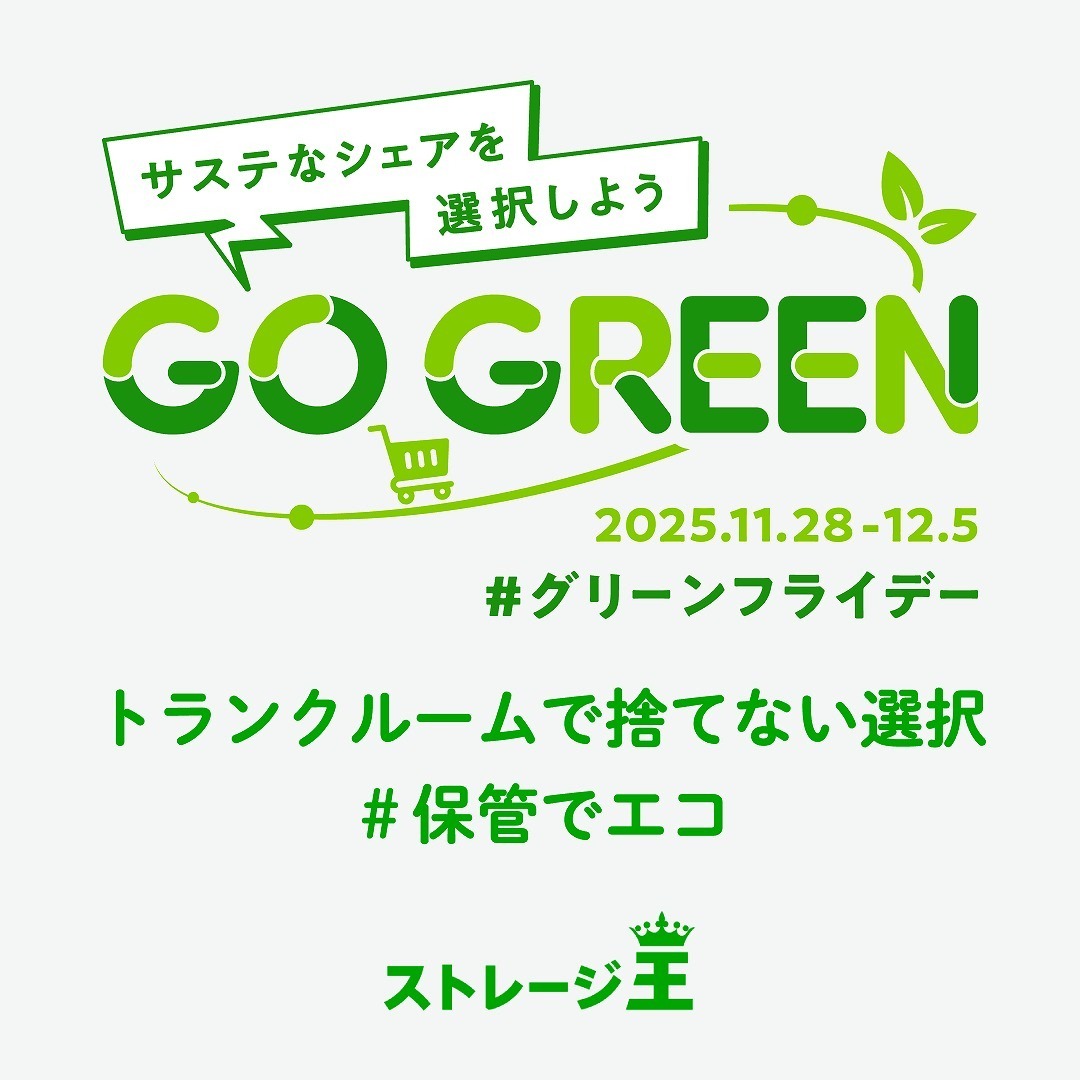 トランクルームに関する企画、開発、運営、管理業を行う株式会社ストレージ王(本社:千葉県市川市、代表取締役:荒川 滋郎、証券コード:2997、以下「ストレージ王」)は、一般社団法人シェアリングエコノミー協会(代表理事:上田祐司、石山アンジュ)が主催する「GO GREENプロジェクト」(シェアエコ・グリーンフライデー2025)(*1)に、本年度、初参画いたします。