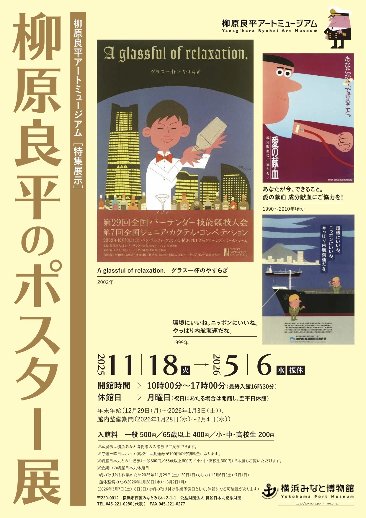 柳原良平アートミュージアムでは、2025年11月18日(火)~2026年5月6日(水・振休)の期間、特集展示「柳原良平のポスター展」を開催します。