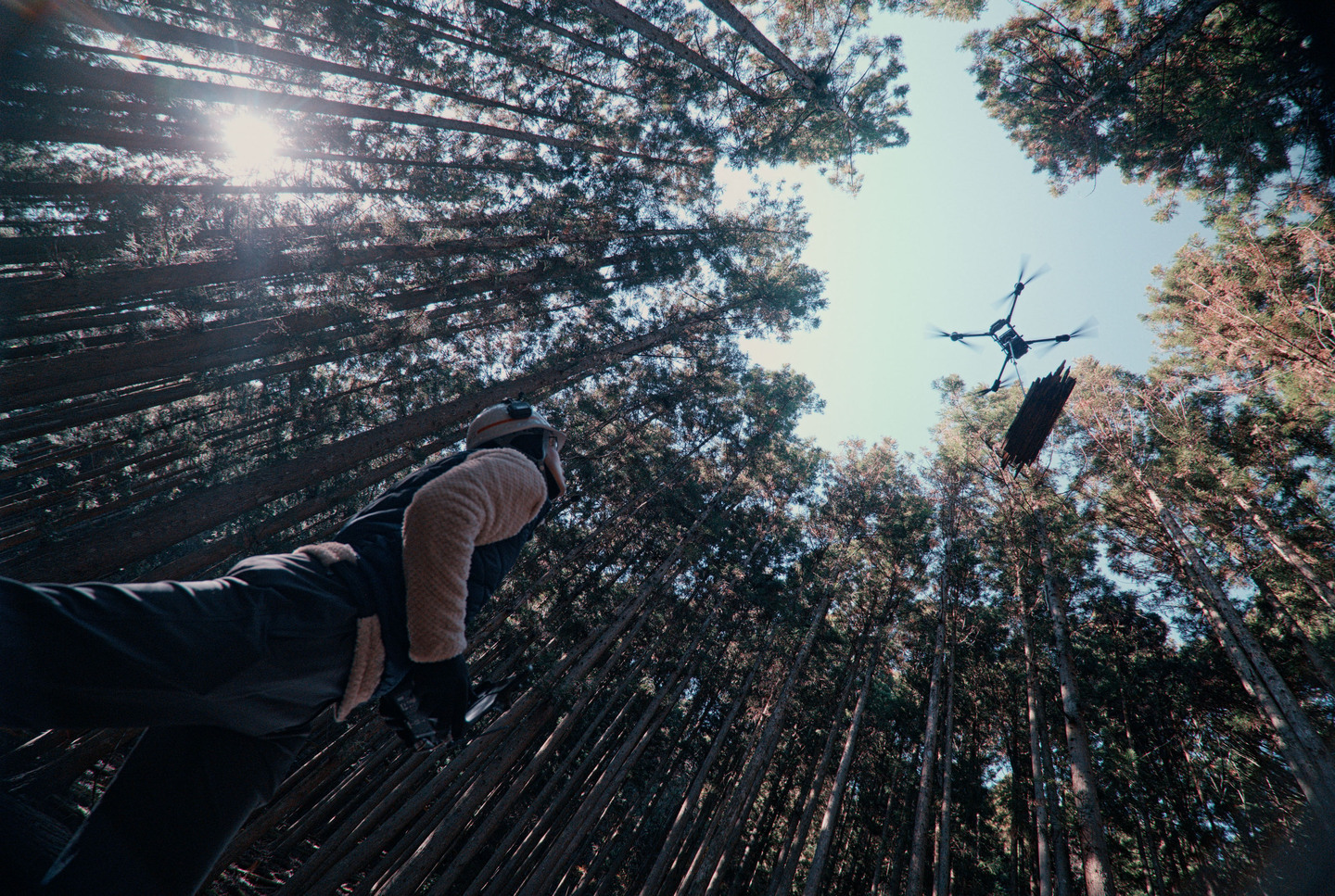 山間部の廃材ドローン運搬