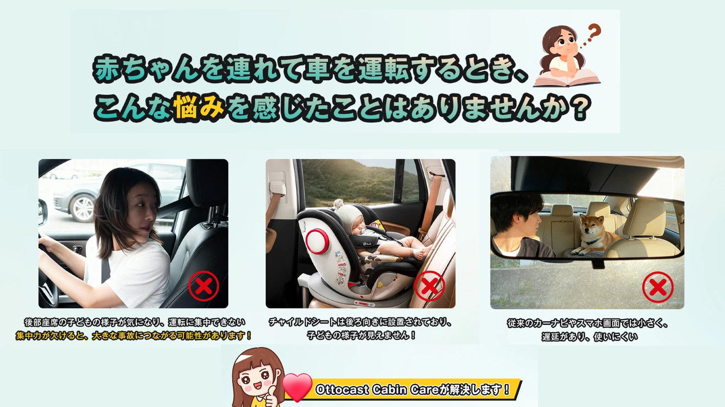赤ちゃんが泣いたら?ペットが暴れたら?運転中に毎回振り返っていますか?オットキャスト 2025 年末の新製品発表——Ottocast Cabin Care がついに登場。大切な「小さな宝物」を持つあなたのために生まれ、運転中の後席への不安をこれからは解消します。