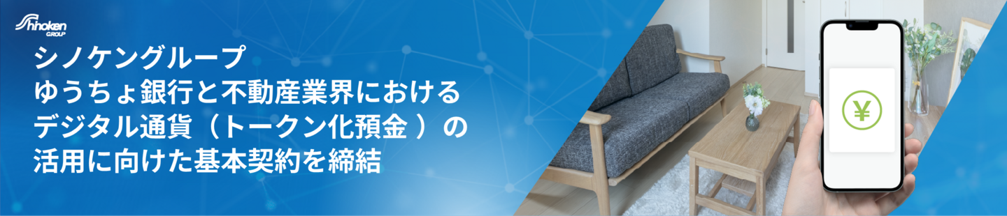 株式会社シノケングループ(東京本社:東京都港区、代表取締役社長:玉置 貴史 以下、グループを総称して「当社グループ」)は、社会課題解決型の企業として、投資用不動産の企画・開発から建築、販売、そして賃貸管理までを一貫して行う資産づくりの提供を通じて、会社員層が抱える将来の不安解消をサポートしています。このたび、当社グループは不動産テック分野をさらに推進するため、株式会社ゆうちょ銀行(本社:東京都千代田区、取締役兼代表執行役社長:笠間 貴之)、株式会社ディーカレット DCP(本社:東京都千代田区、代表取締役 会長兼社長執行役員:村林 聡)の3社でデジタル通貨(ゆうちょ銀行のトークン化預金)(以下、「トークン化預金」)の活用に向けた協業のための基本合意書を締結したことをお知らせいたします。お客様の「暮らしの履歴」を、データという新しい資産に変えることで、当社グループの事業領域における新たな価値創出を目指します。また、不動産業界初*の取り組みとして、トークン化預金を利用した実証実験(PoC)を開始いたします。