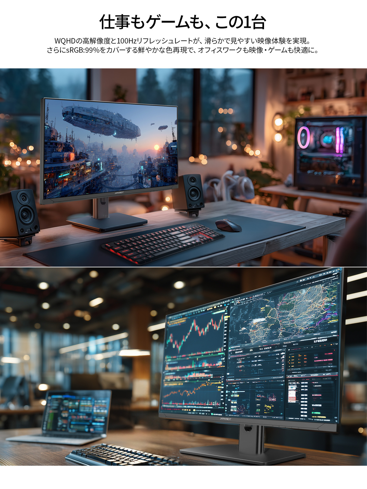 1)27インチ IPSパネル搭載 WQHD液晶モニター