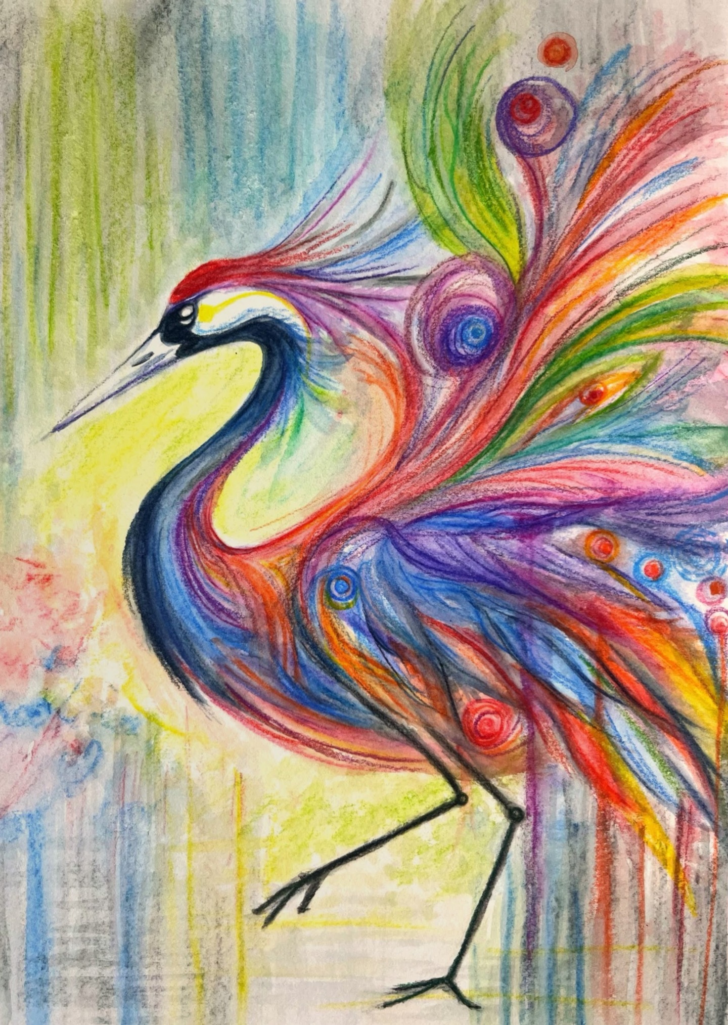 物心がついた頃から、絵を描くことや美しいものが好きでした。私の作品は、自然や動物、心の内側にある感情をテーマにしています。目に見えない風や音、空気の流れ、そして言葉にできない感情を、色や形で表現することを大切にしています。