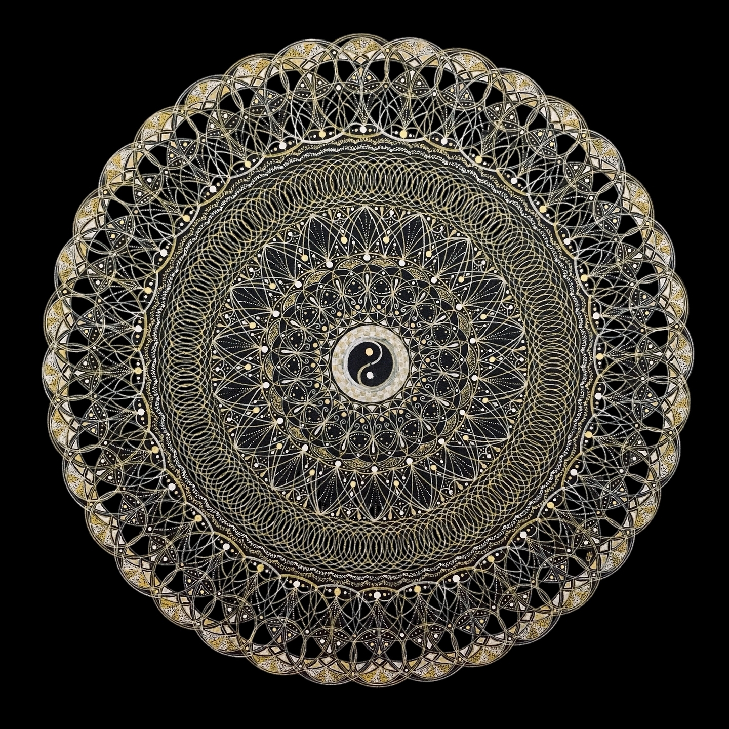 本展「SouluArt 〜魂の光〜」では、点・線・円で描いたマンダラを通して、内側(魂) に灯る光が少しずつ鮮やかに輝きを増す時間を届けたいと思っています。緻密で複雑な模様のひとつひとつには、心の奥や日常の静かな瞬間に寄り添うような想いを込めました。