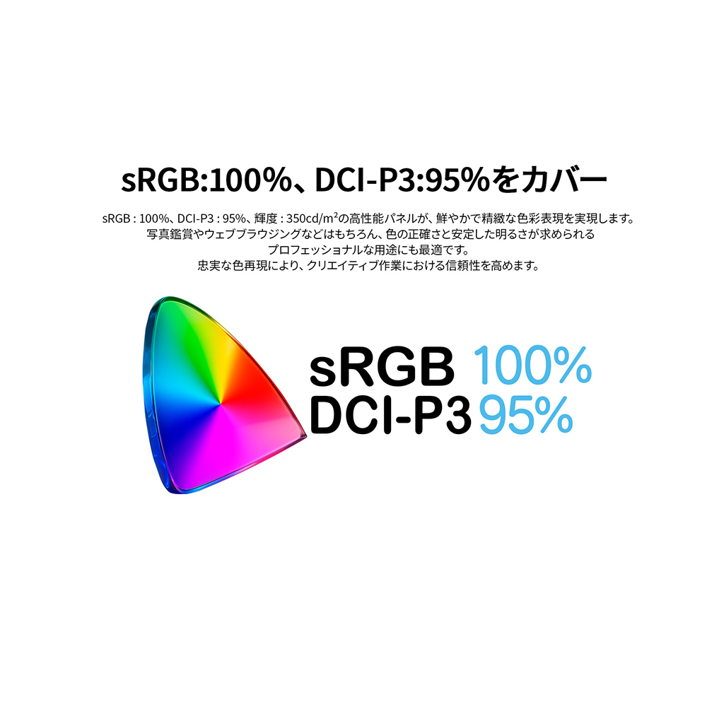 6)sRGB:100%、DCI-P3:95%の広色域
