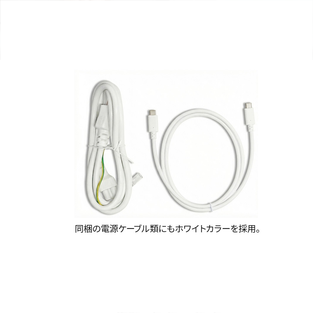付属のケーブル、電源アダプターにもホワイトカラーを採用。全体が白基調に統一された部屋や医療機関などでの使用にも最適です。