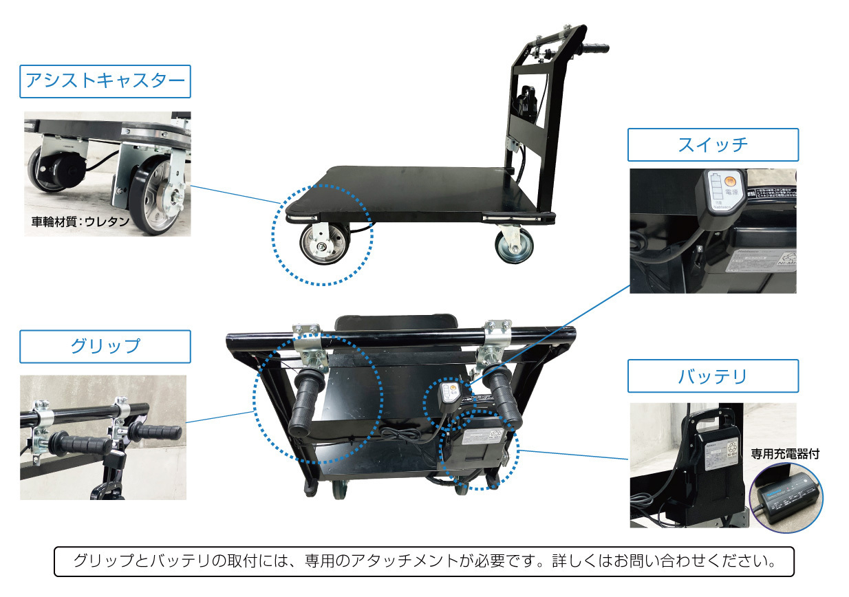 ・お使いの台車に取り付けるだけでアシスト機能を付与。
