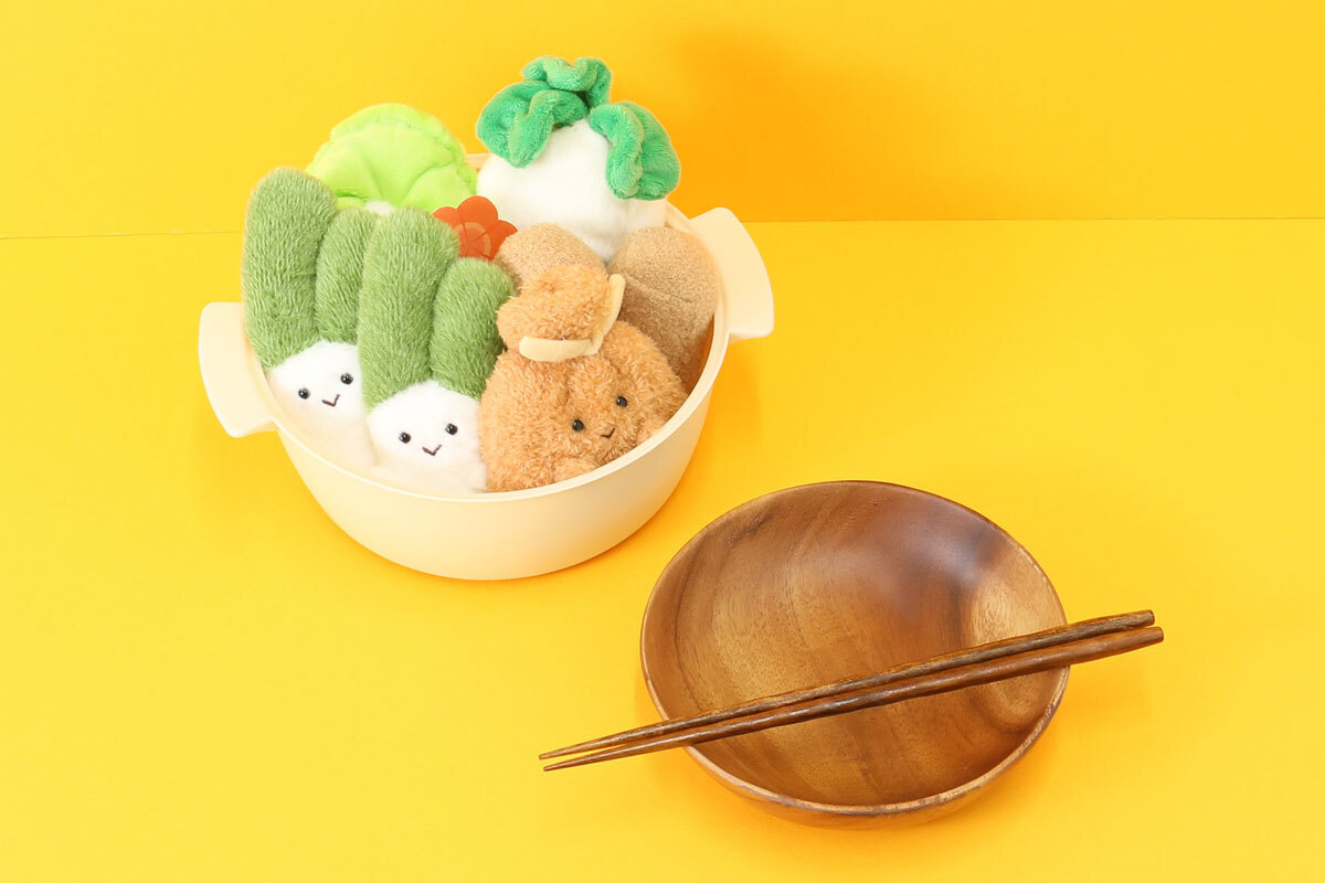 まんまるフォルムが愛らしい「ぽちゃまる」シリーズ。今回販売するのは冬の食卓やこたつに欠かせない冬のおいしい食べ物をテーマにしたぬいぐるみです。