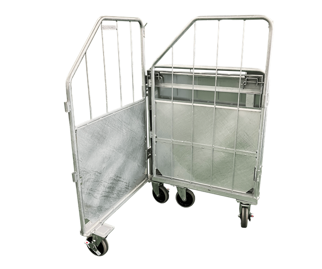 分別回収に便利。屋内外で使える折りたたみ式のフレコン台車です。