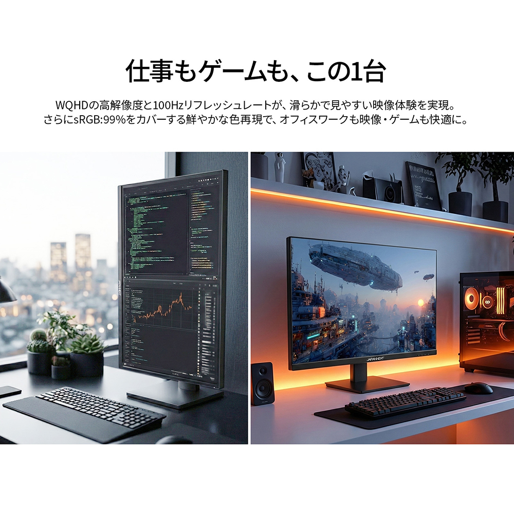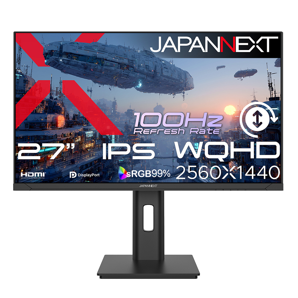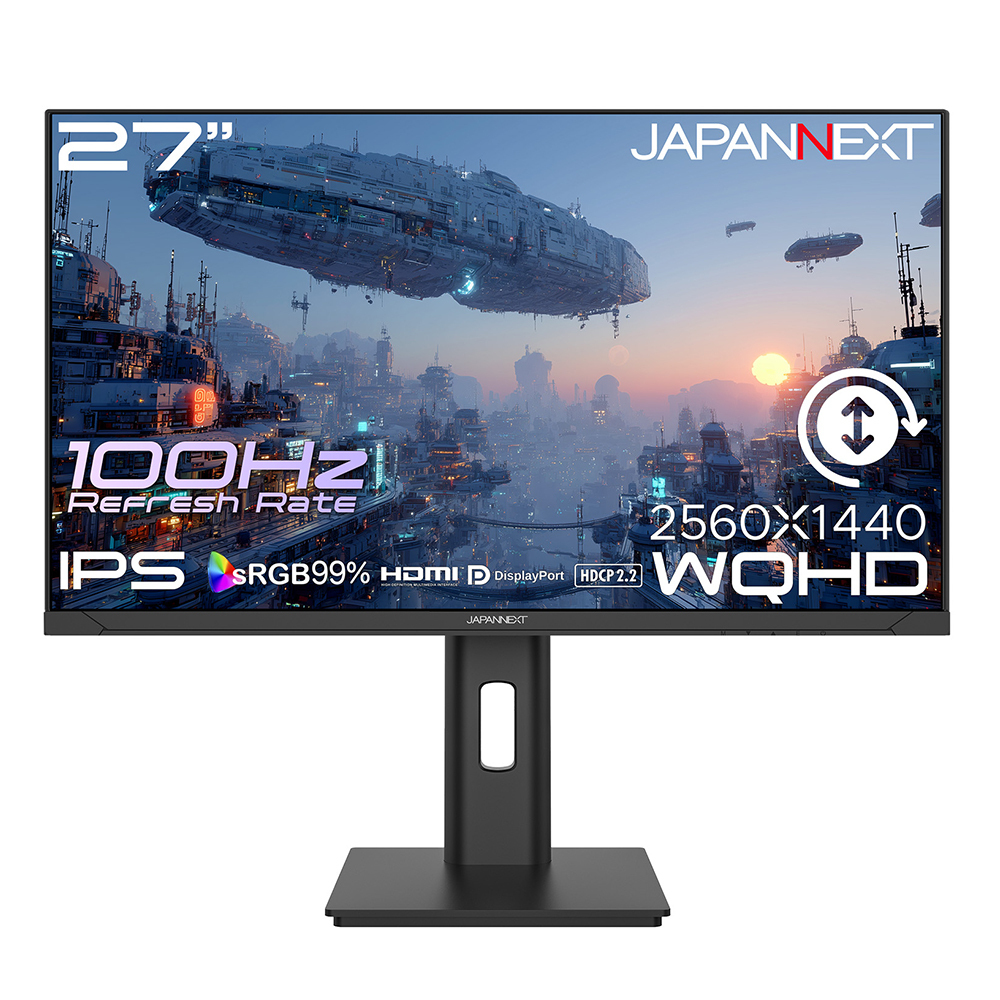 JAPANNEXTが27インチ IPSパネル採用 昇降式多機能スタンドを搭載したWQHD液晶モニターを29,980円で12月18日(木)に発売