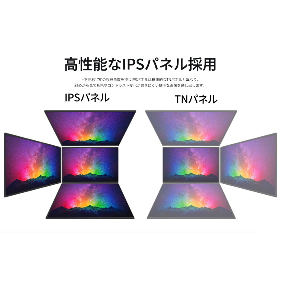 あらゆる角度から見ても色やコントラストの変化がおきにくいIPSパネルを搭載し、広視野角上下左右178°を実現します。