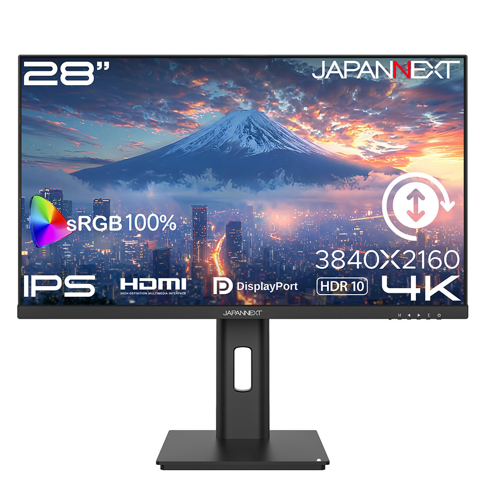 JAPANNEXTが28インチ IPSパネル採用 昇降式多機能スタンドを搭載した4K液晶モニターを36,980円で12月18日(木)に発売