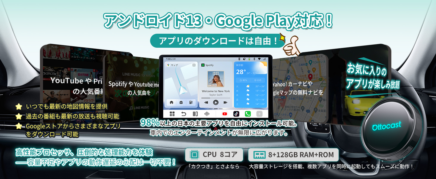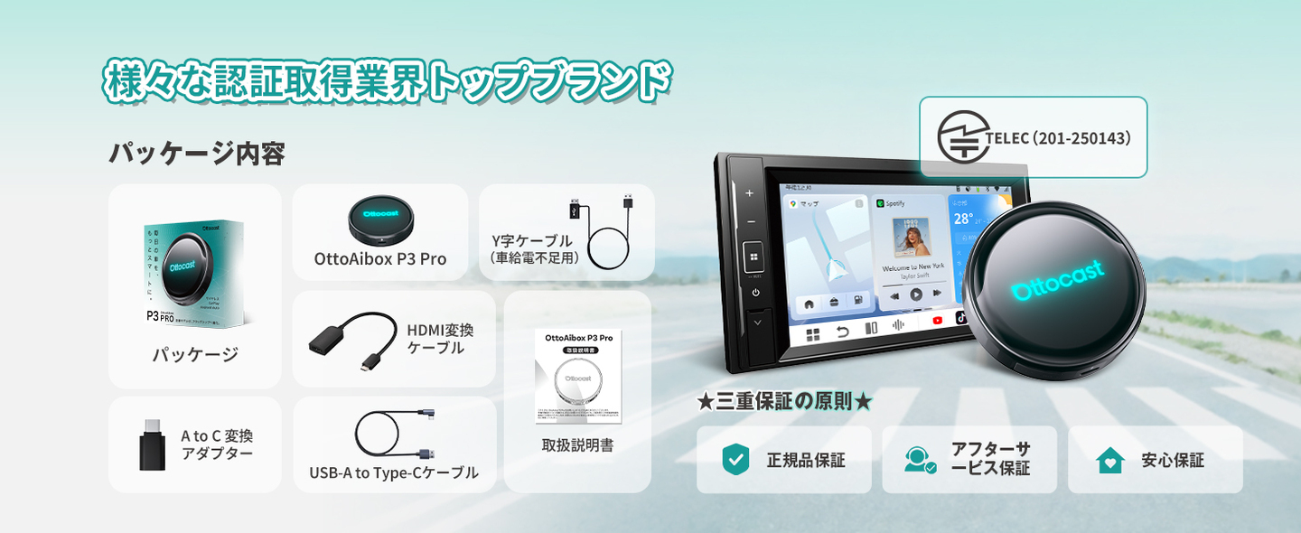Ottocast(オットキャスト)は、10年以上のマルチスクリーン相互接続技術の開発経験を有し、先端技術を採用して信頼性の高い車載用電子パーツを研究開発・生産しております。OttocastはAmazonトップグローバルセラーであり、日本、アメリカ、イギリス、ドイツ、カナダ、フランス、スペインなどを中心に70カ国以上で販売しております。お客様にご満足いただけるよう、商品づくりを目指し、1年間安心保証付き、日々サービス向上に努めています。