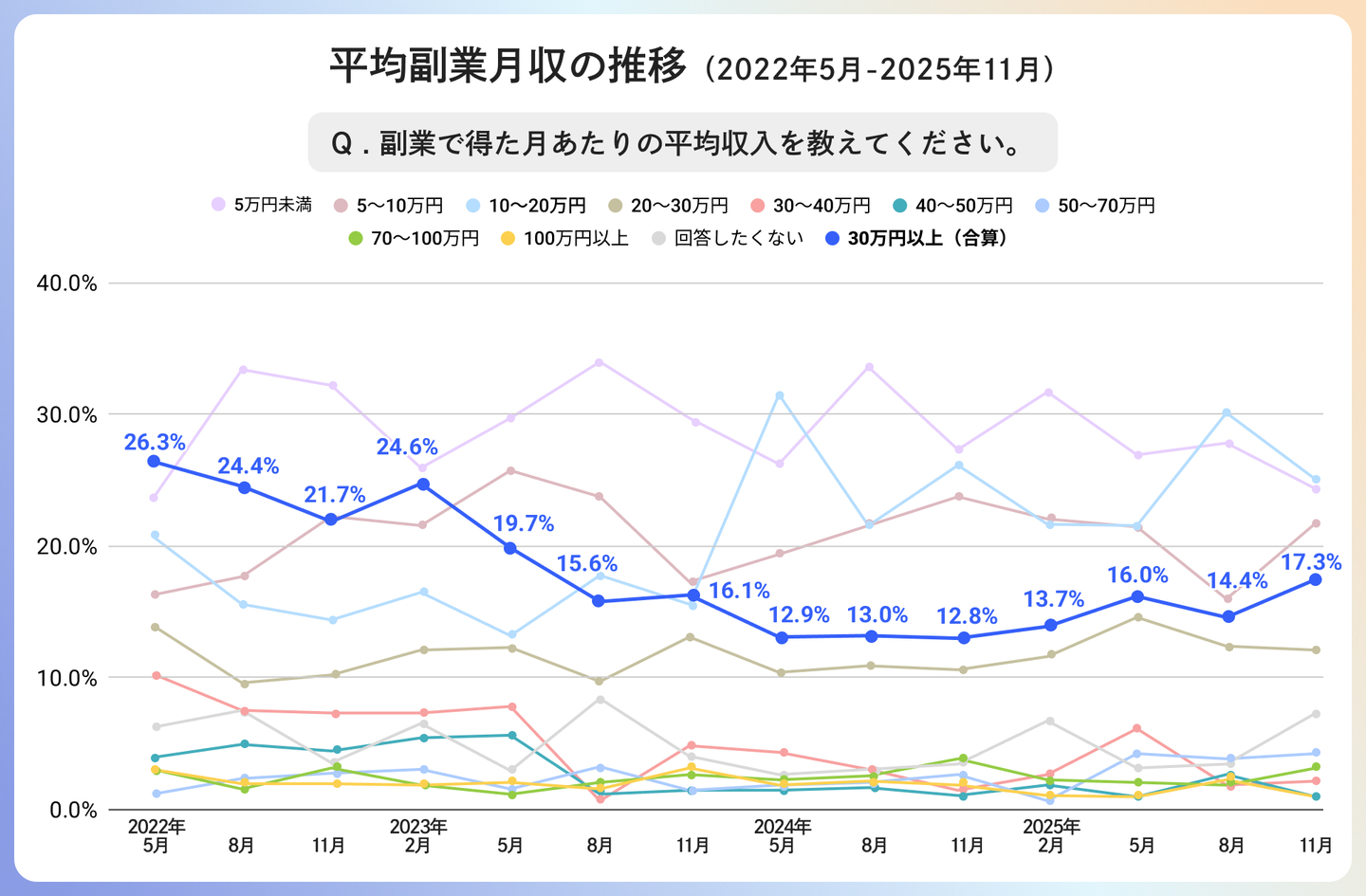 ・副業月収「30万円以上」の割合が上昇、キャリア形成の手段として定着