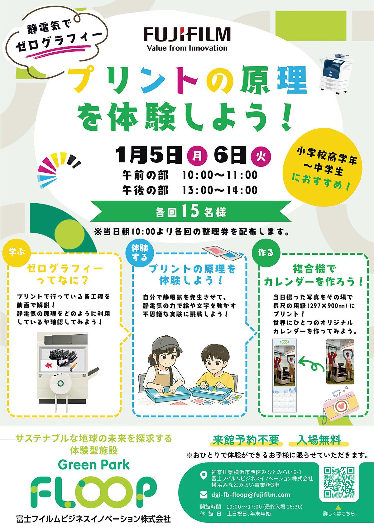 富士フイルムの体験型施設 Green Park FLOOP(フループ) で、1月5日(月)・6日(火)、冬休み限定イベントを開催。