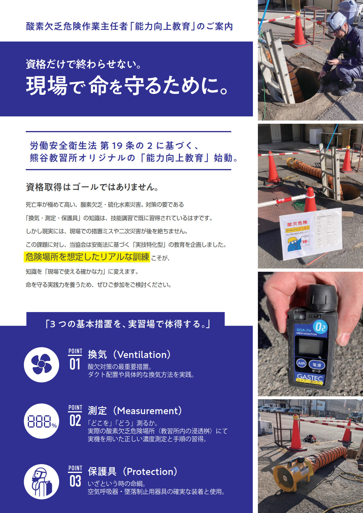 【埼玉・熊谷】死亡災害ゼロへ。「知識と現場のギャップ」を埋める実戦型再教育。『酸素欠乏・硫化水素危険作業主任者 能力向上教育』を2026年4月より新規開講