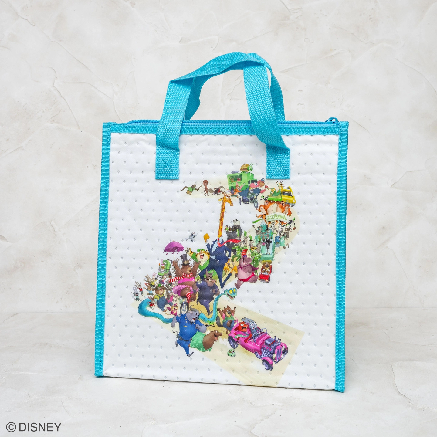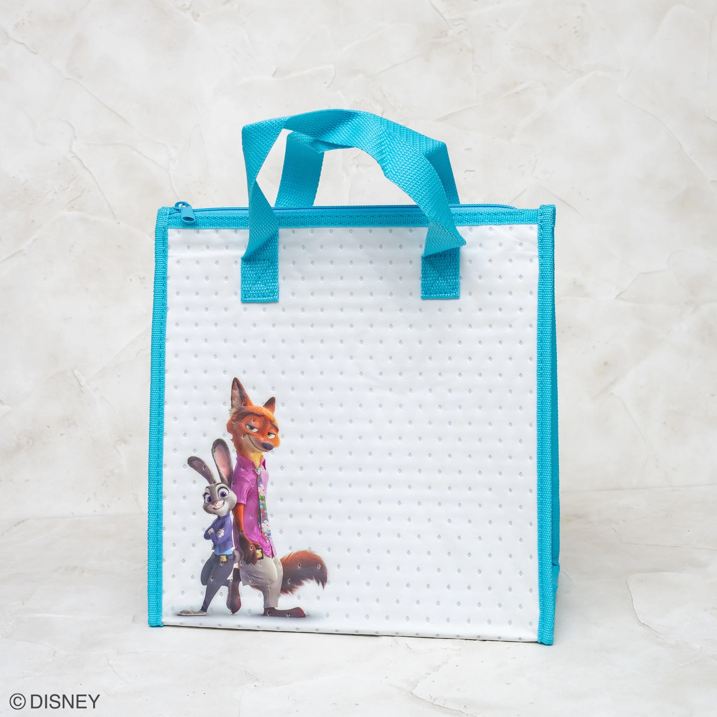 『ズートピア2』の象徴的なアートが大きくデザインされ、マチが広いためお弁当箱とボトルを一緒に入れることができます。