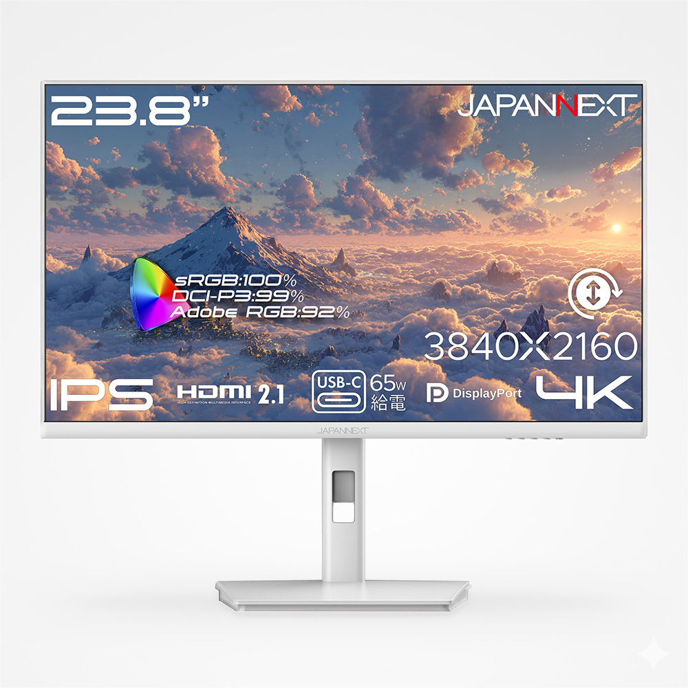 JAPANNEXTが23.8" IPSパネル 多機能スタンド搭載 USB-C(最大65W)給電に対応したホワイトカラーの4K液晶モニターを40,980円で発売