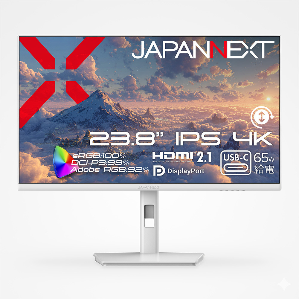 液晶ディスプレイ(液晶モニター)製品の開発・製造・販売などを手がけている株式会社JAPANNEXT(ジャパンネクスト)(本社:千葉県いすみ市)は、23.8インチのIPSパネルを採用、昇降式多機能スタンドを搭載し、USB-C(最大65W)給電に対応した、ホワイトカラーの4K液晶モニター「JN-IPS238U-HSPC6-W」を40,980円(直販価格:税込)で12月25日(木)に発売いたします。