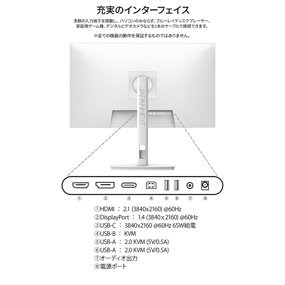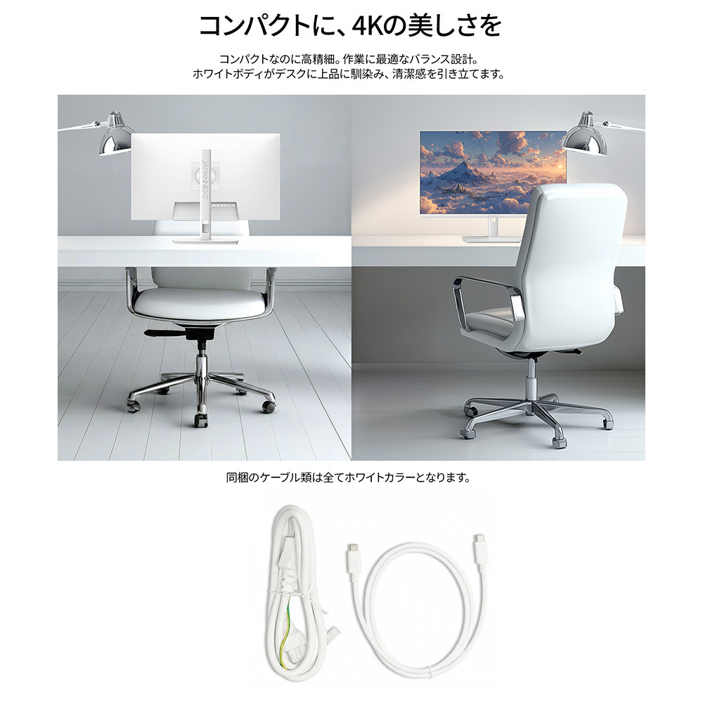 USB-C(最大65W)給電対応 4K液晶モニター(ホワイト)商品概要