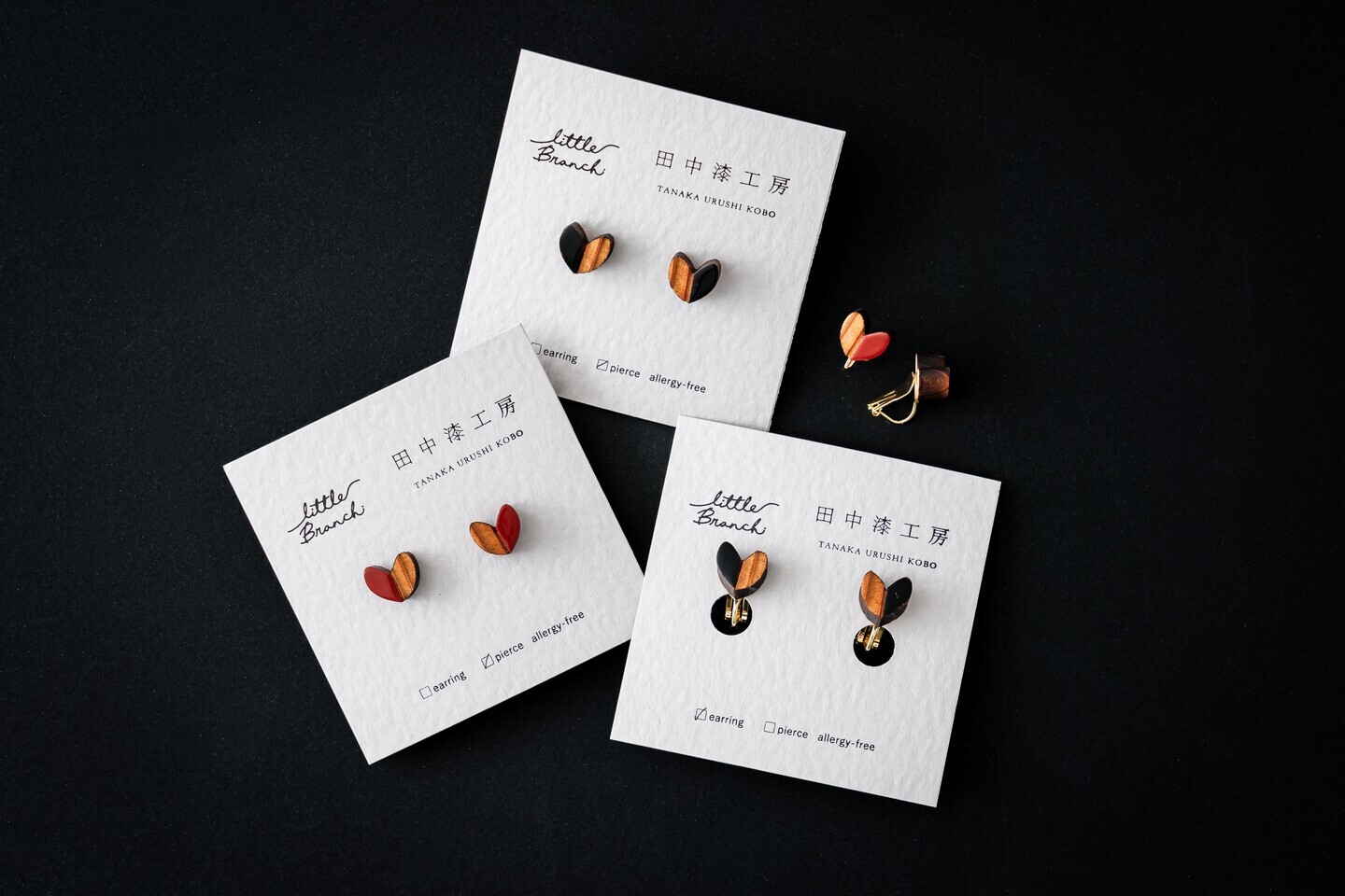 「地域材のある暮らしを当たり前に」を目指し愛媛県産材を用いたアクセサリー等を展開する「Little Branch」(所在地:愛媛県松山市、代表:小澤 奏)より、愛媛県西条市の「田中漆工房」とコラボした新しいアクセサリーをリリース。愛媛県産のスギなどを用いて製作した木のパーツに田中漆工房が漆加工を施すことで和装にはもちろん普段使いもできる木と漆の魅力を伝える商品が生まれた。