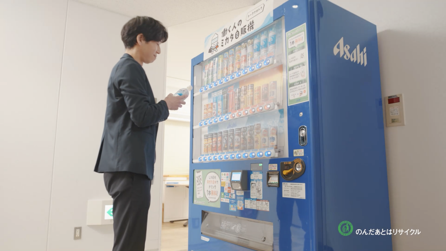 アサヒ飲料の新サービス 「働く人のミカタ自販機」を1月1日から展開! キーワードをLINEに入力すると、飲料が受け取れるクーポンを発行!