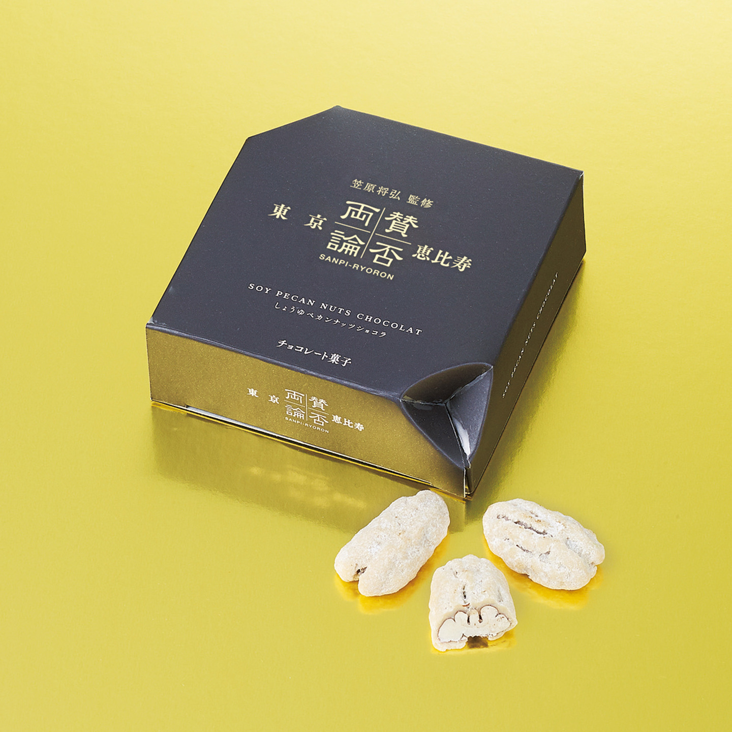 ローストしたペカンナッツに良質なチョコレートをまぶし、日本の伝統調味料である醤油で味付け。
