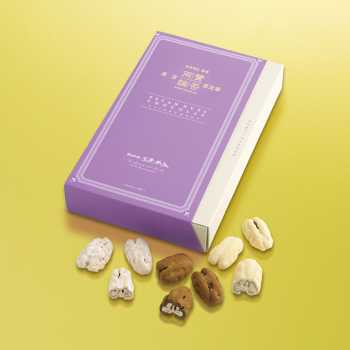 大粒のペカンナッツを口溶けの良いチョコレートで包み、厳選された3種の和素材で味付け。