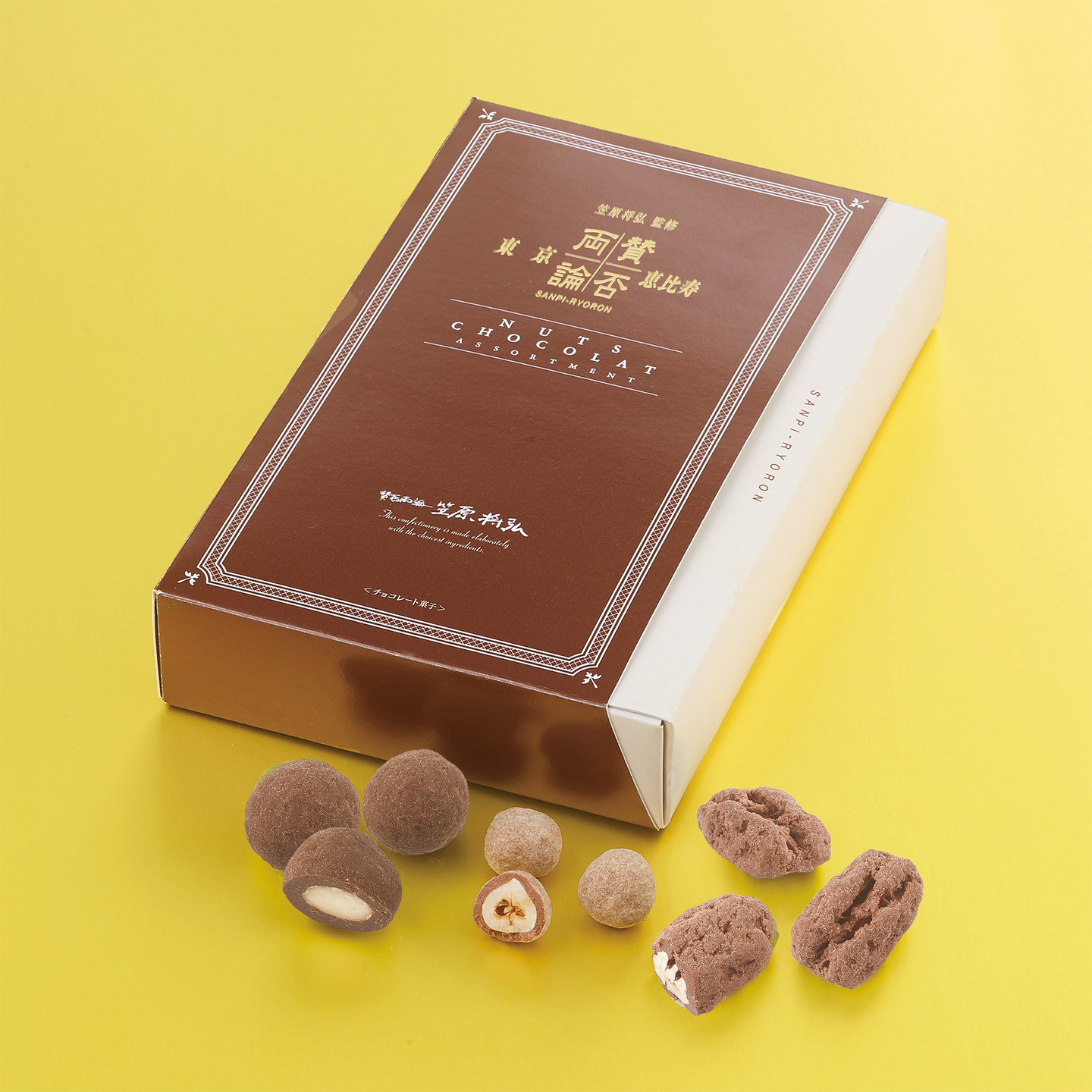 3種のナッツをチョコレートで包み、笠原流の味付けを施しました。