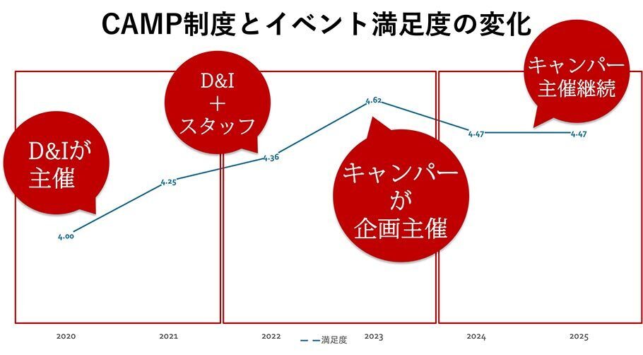 CAMPの制度化は2023年の夏。テスト運用からスタートし、見えてきた課題や改善点を踏まえて2024年の夏に制度のブラッシュアップを行い、現在運用されている形になりました。