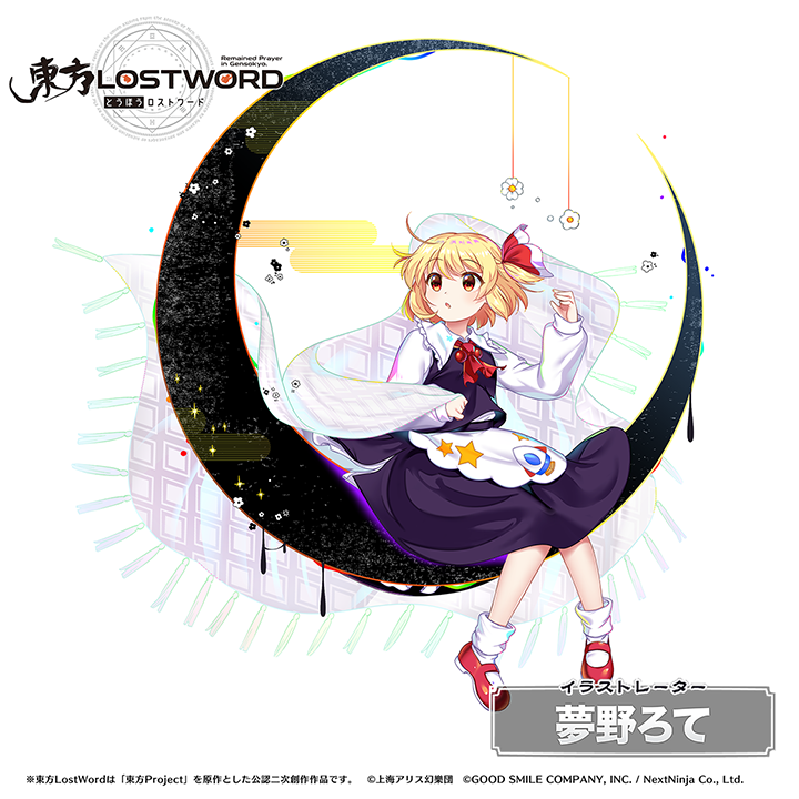 東方LostWord MVプロジェクトでは、キャラクターデザインを手掛ける「夢野ろて」がMVプロジェクト用に新規で描き下ろしたイラストを作成しており、各楽曲のMVに登場します。今回は「ルーミア」の描き下ろしイラストを公開します。