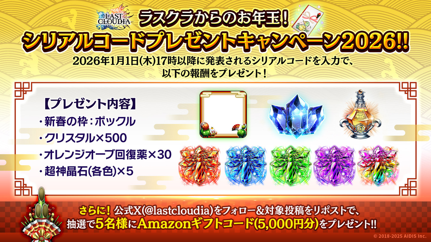 新年を記念して、『ラスクラからのお年玉!シリアルコードプレゼントキャンペーン2026!!』を開催いたします。