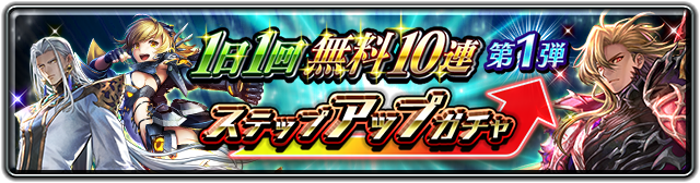 本ガチャは1日1回無料で引けるステップアップ10連ガチャで、STEP5までを3周引くことができます!