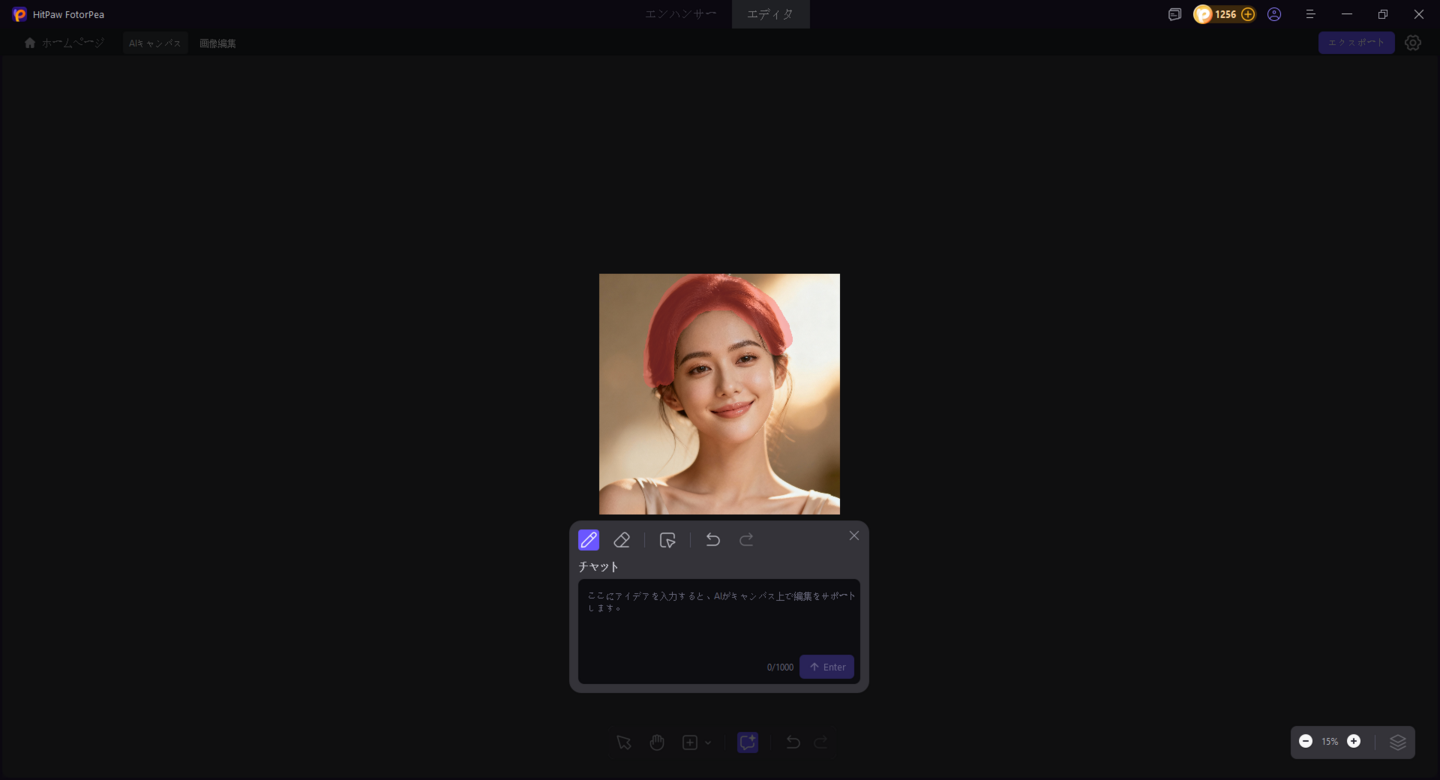 AIキャンバスは最新の大規模AIモデルを活用した新しい画像編集機能で、「チャット形式」でのワンクリック編集に対応しています。ユーザーはテキストで指示するだけで、画像の補正・加工・スタイル変更などを簡単に行うことができ、専門知識がなくても直感的な操作が可能です。