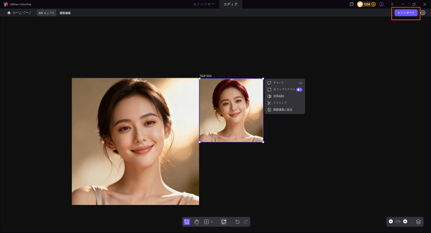 編集が完了したら、「エクスポート」をクリックして画像を保存します。