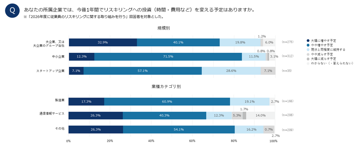 ・2026年度、リスキリングへの投資は「増やす」企業が7割超 規模・業種で異なる投資スタンスも明らかに