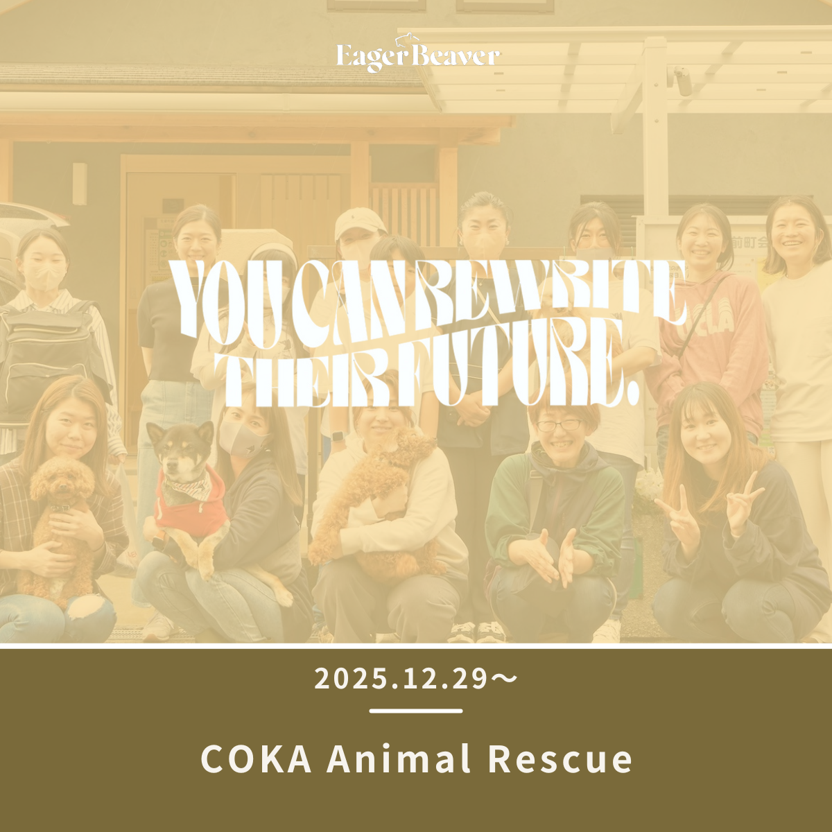 大学生チャリティーブランド Eager Beaver(イーガービーバー) は、フォスター制度を軸に動物保護活動を行う COKA Animal Rescue とコラボレーションし、売上の一部を保護活動に寄付する限定アパレルを発売します。本コラボは、「一頭ずつ、一家庭ずつ」という考え方を大切にするCOKA Animal Rescueの保護活動を、日常の中から支える仕組みとして企画されました。特別な支援ではなく、“いつもの一着”が命をつなぐ一歩になる取り組みです。