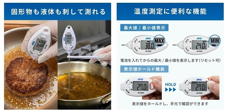【新製品情報】A&Dは、料理やお菓子づくり、乳児のミルクの温度管理などに便利な大型液晶中心温度計「AD-5629」を新発売いたしました。