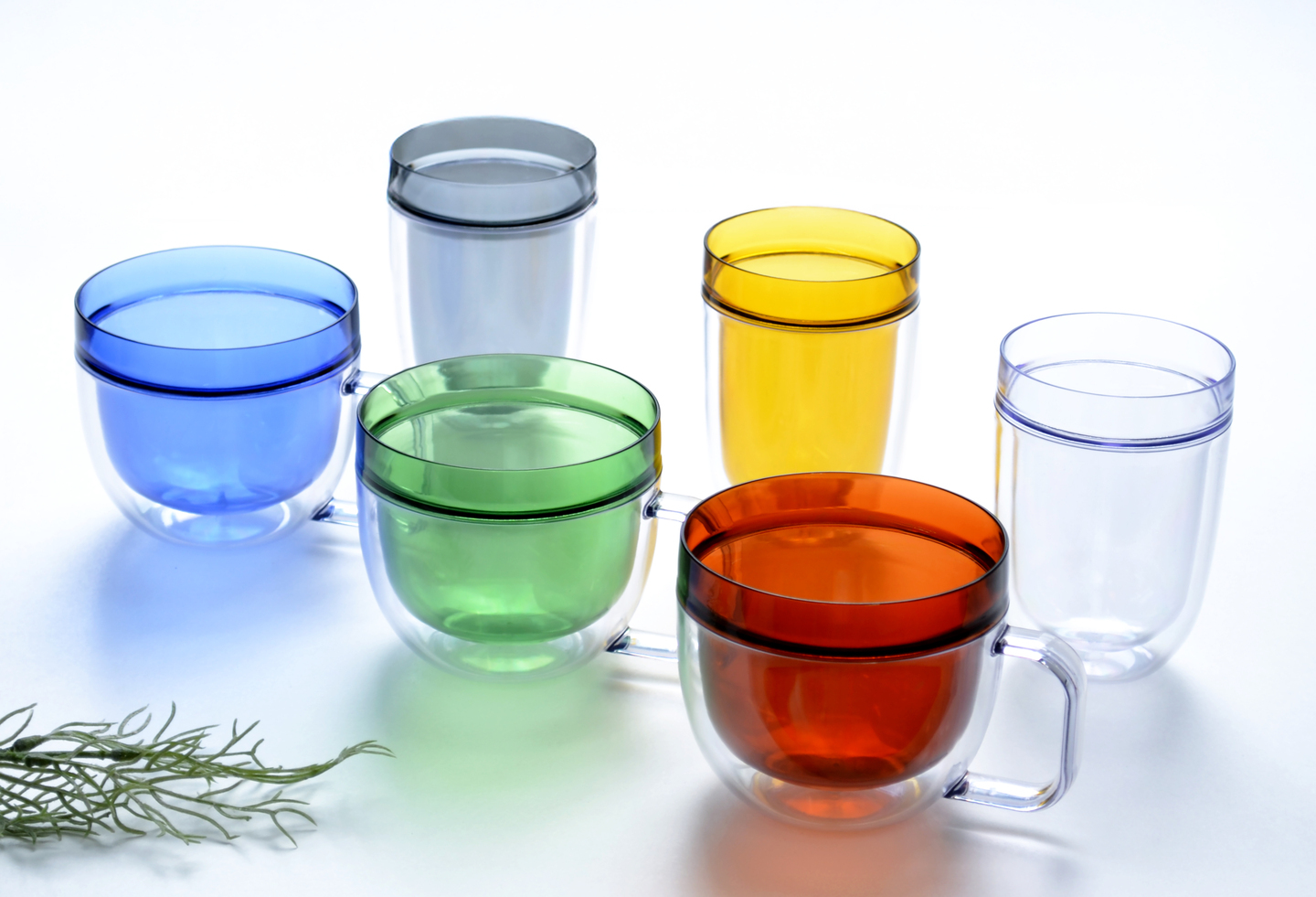 「Polkaマグ」「Polkaグラス」各6色新発売。AS樹脂製ダブルウォールで結露しにくい。クリアでおしゃれなマグカップとグラス。