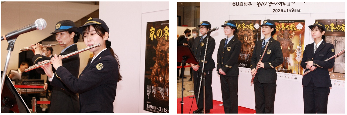 京都駅で勤務する、JR西日本とJR東海の駅員が生演奏でコラボレーション。ピアノとフルートで鉄道にゆかりのある曲を始め名曲を披露。