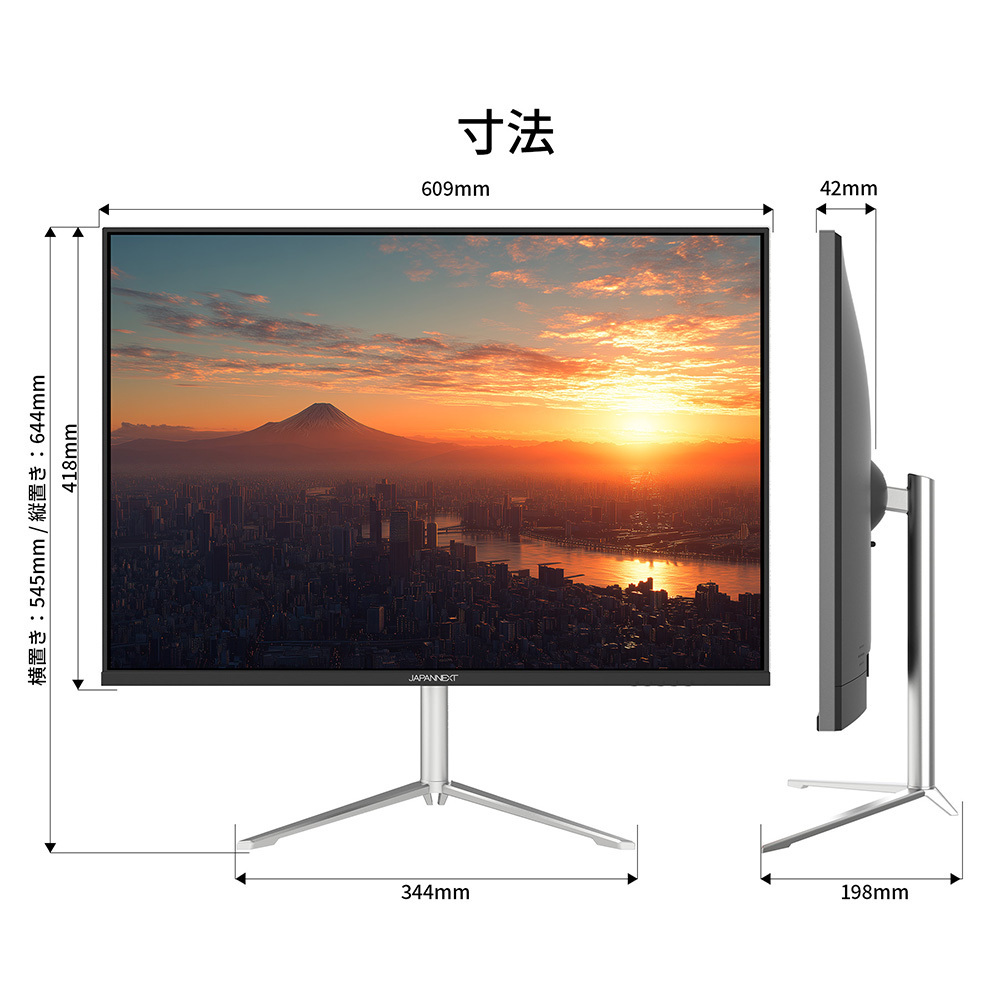 | 外形サイズ(スタンド有) | 高さ(横置時)545mm x 幅609mm x 奥行198mm |