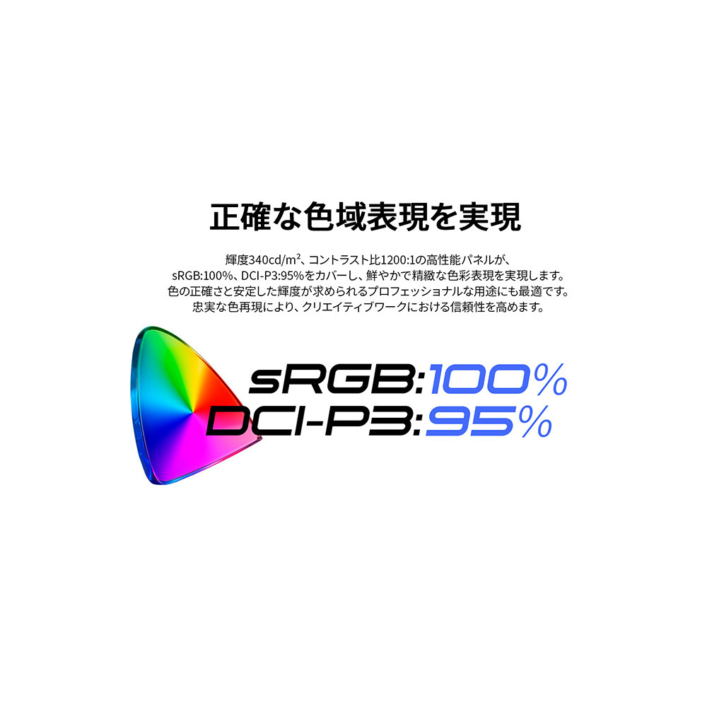 3) sRGB:100%、DCI-P3:95%の広色域