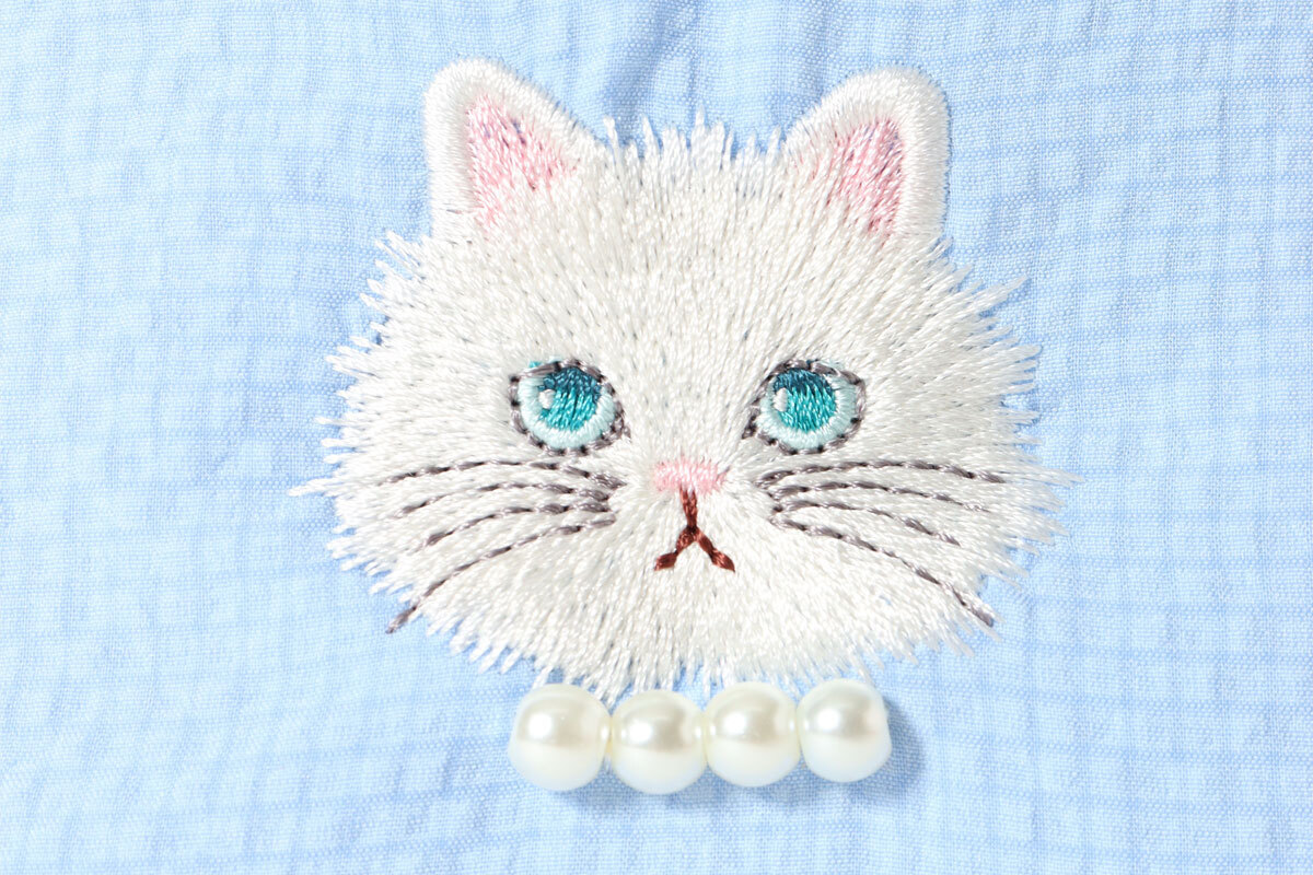 それぞれ毛なみや表情が異なった、ネコの刺繍にうっとり。