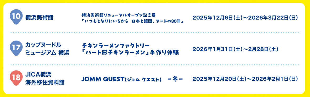 各施設ホームページは、みなとみらい Art & Museum ウェブページを参照ください。