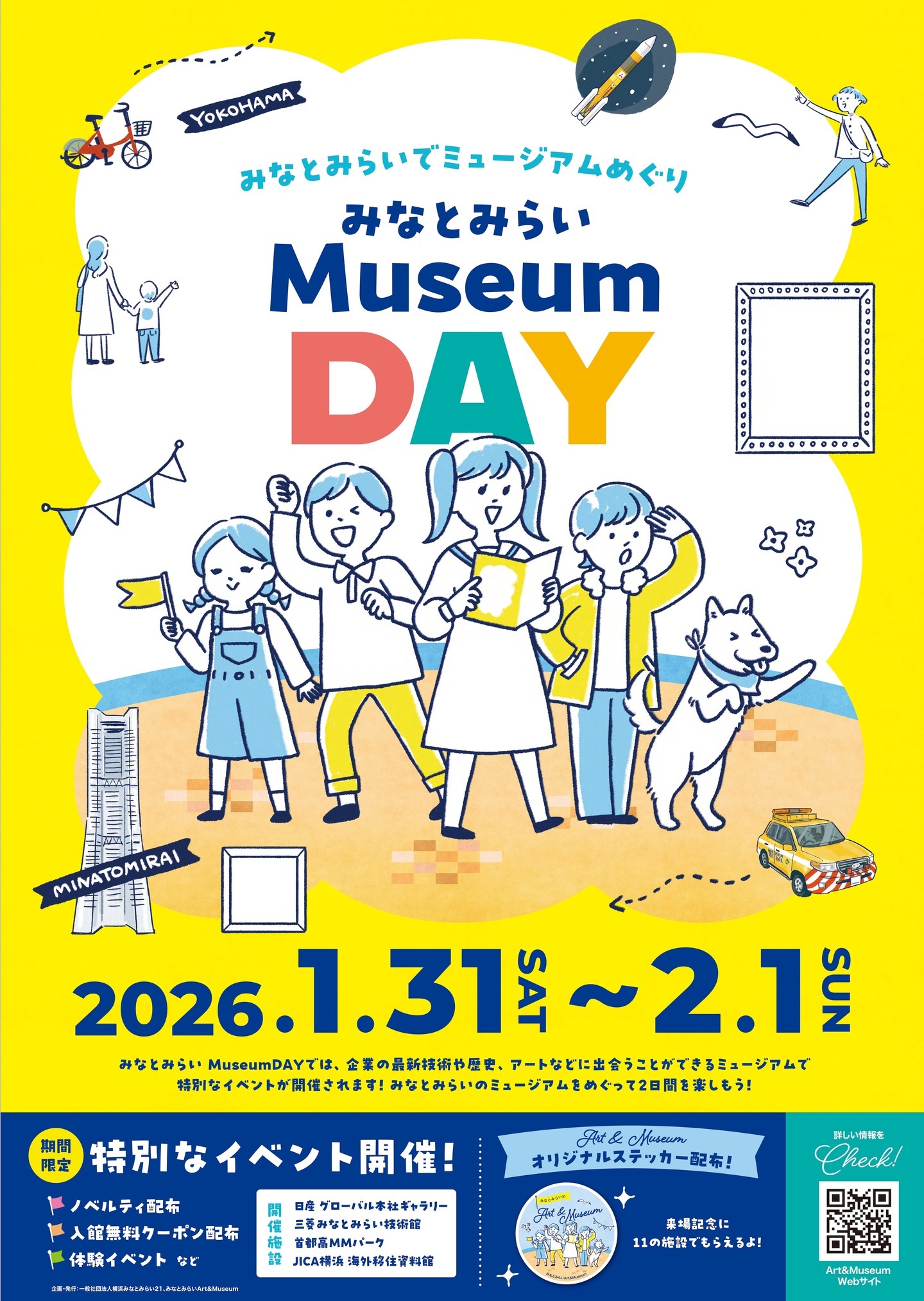 一般社団法人横浜みなとみらい21(横浜市西区みなとみらい 理事長 漆原順一)は、2026 年1月 31 日(土)および2月1日(日)、みなとみらい21地区内に集積する企業ミュージアム等を回遊しながら、街の魅力を再発見するイベント『みなとみらい Museum DAY』を開催します。本イベントは、みなとみらい21地区内に集積する 22 施設の企業ミュージアム等と連携し、新たな『知』や『気づき』と出会うきっかけを発信する「みなとみらい Art & Museum」の一環として行われるもので、ミュージアムをめぐりながら楽しく学ぶイベントです。このイベントでは、来館記念にオリジナルステッカー配布のほか、施設特別イベントを行います。ぜひこの機会に、みなとみらい21地区のミュージアムをお楽しみください。