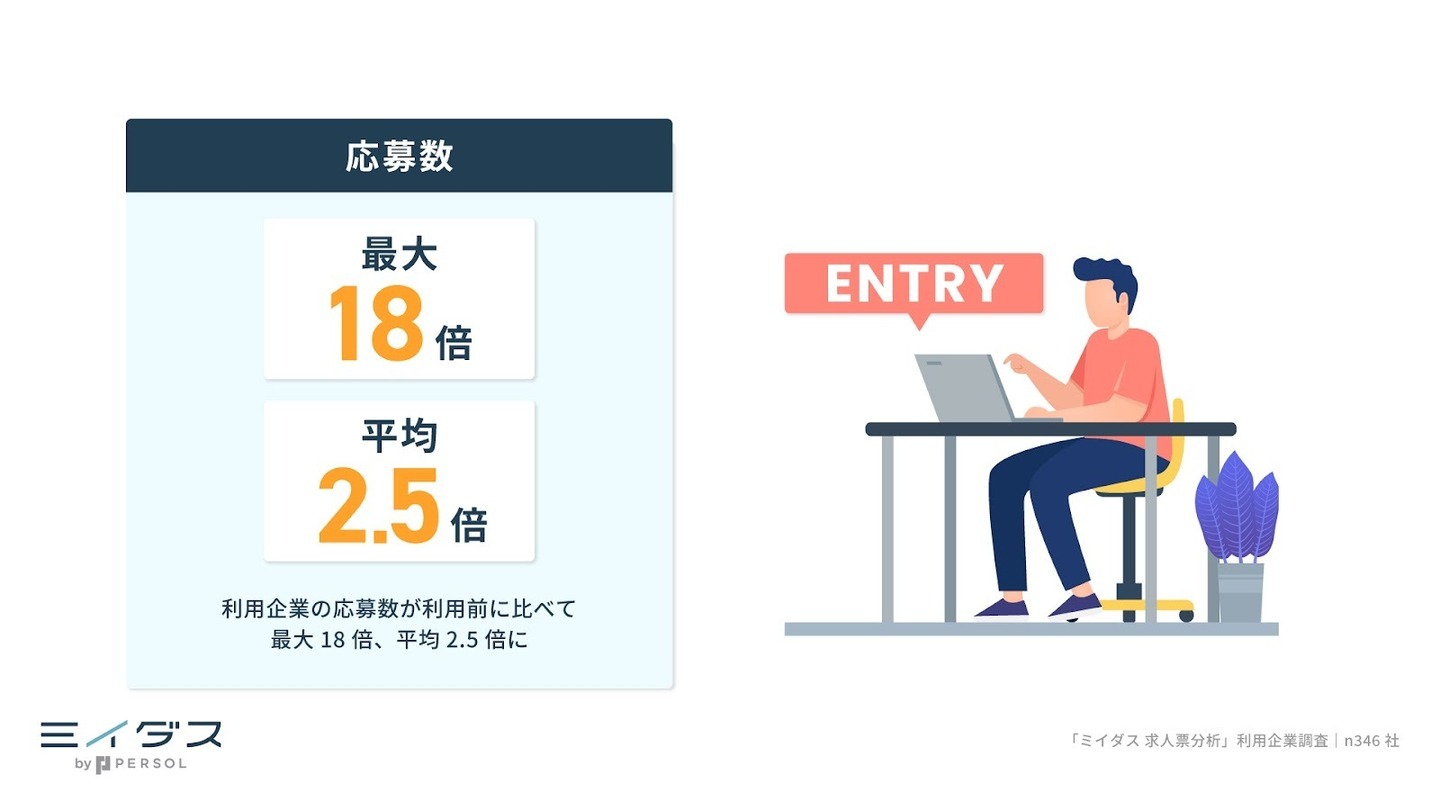 ・応募数が利用前に比べて最大18倍、平均2.5倍